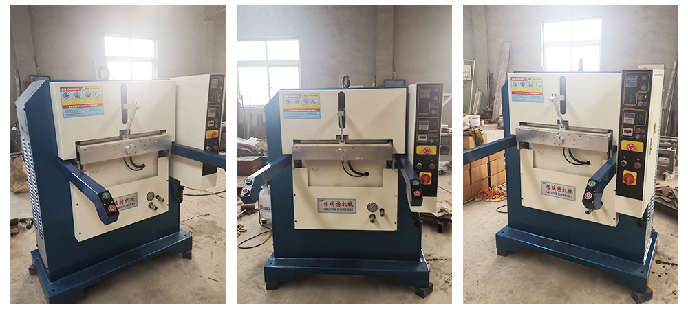 GRT-E Series Leather Embossing machine has such functions as heating, pressing, timing and pressure maintaining. It is mainly used for the cutting and ironing of various leather shoe upper surface patterns, the laminating of outsole and heel and welt, the embossing print on various leather box surface, auto seat cushion, leather bed mat, leather sofa, etc. This model of machine is featured by excellent embossing performance and high efficiency. With a mobile operation bench, it is safe and convenient in operation. Meanwhile, when it is mounted with plastic board, it can work as a cutting machine for small pieces.
